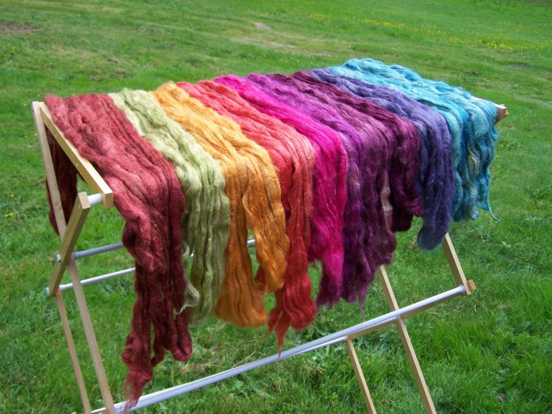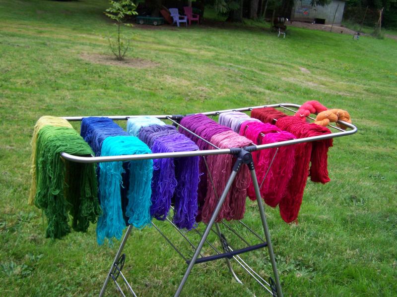 Hand dyed yarn drying in the sun