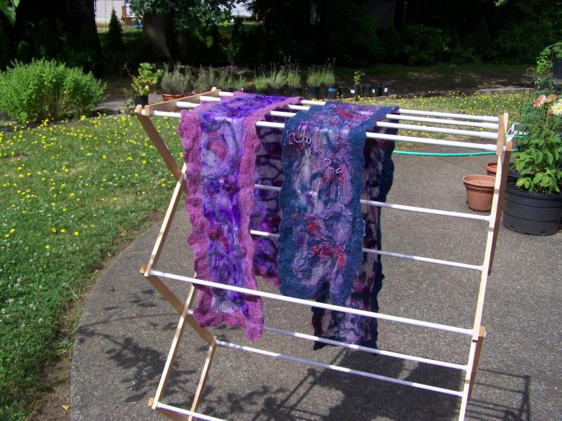 Nuno felted scarves drying in the sun