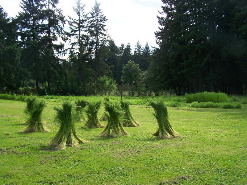 this is drying out the flax after pulling it out of the ground so that we can then harvest the seeds for next years harvest.